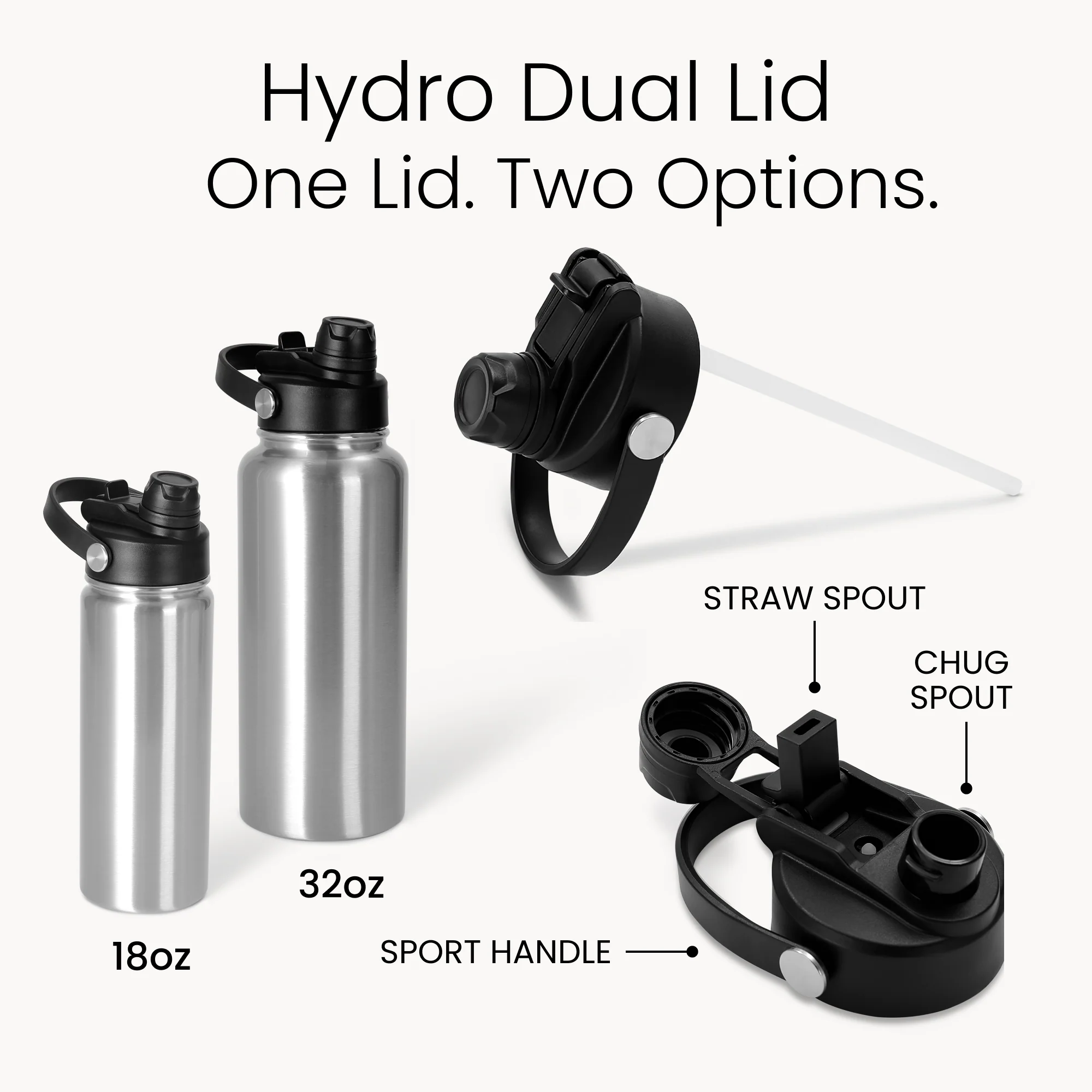 - Screw On Dual Sport Lid with 2-in-1 Design: 1 side has a straw spout, other side is an open chug spout