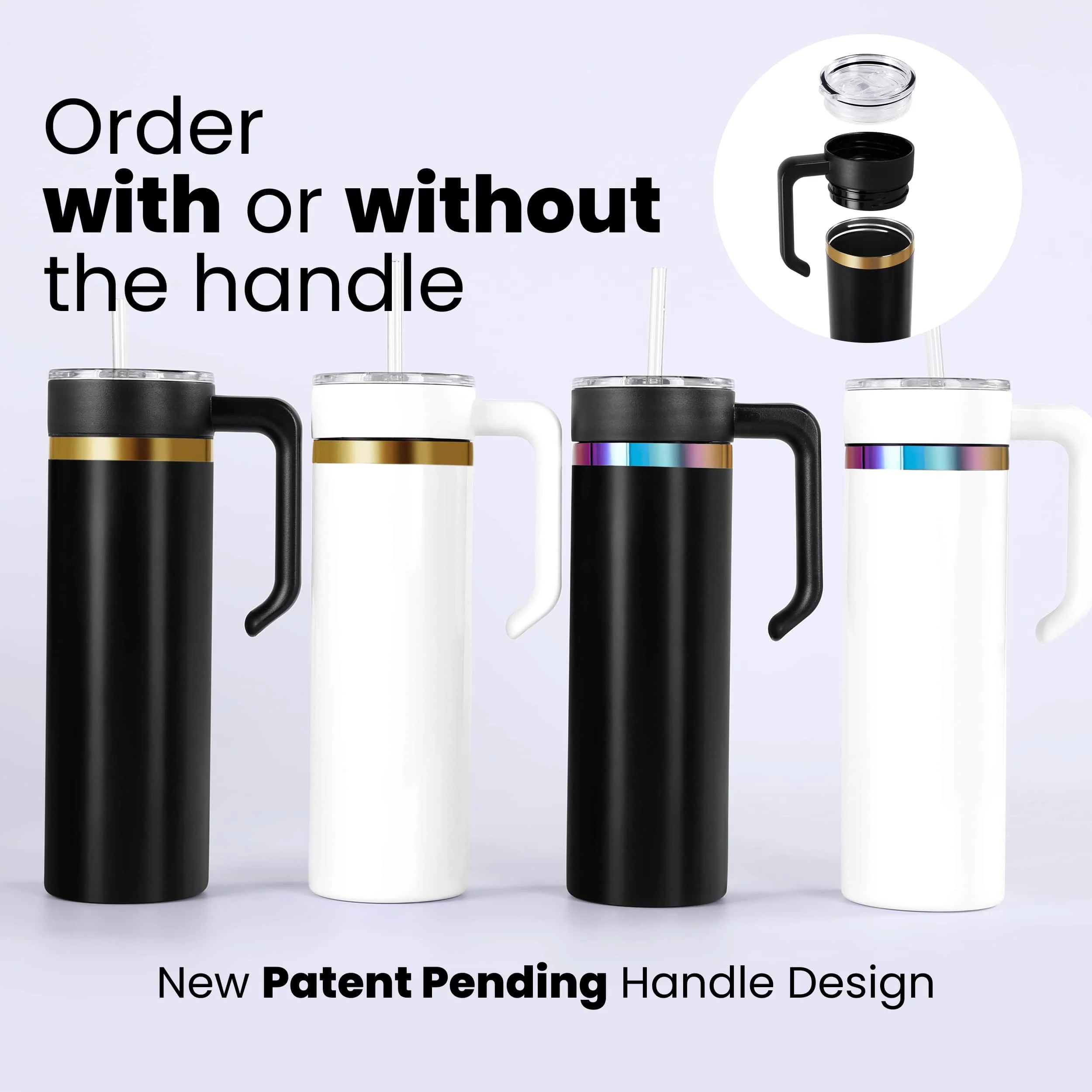 - Twist System This tumbler has a 20oz Skinny Handle Option